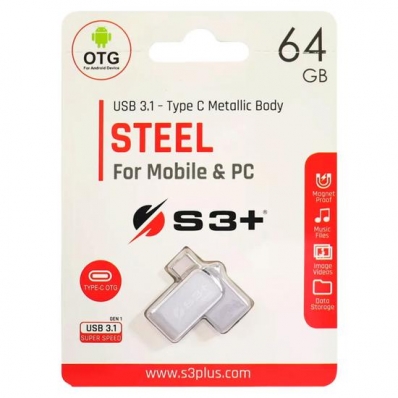 Pendrive 64GB S3+ Steel / USB 3.1 / USB-C - Prata (S3PD3104064AL-R)