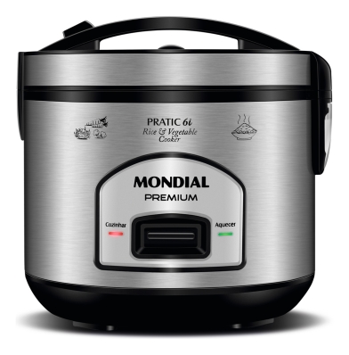 "Prepare deliciosas receitas para sua família com a Panela Elétrica Pratic 6i Premium Mondial. A cuba antiaderente é removível e tem capacidade para 6 xícaras. Acompanha cesto que cozinha alimentos no vapor, preservando todos os nutrientes. Possui função aquecer, que mantém o alimento quentinho mesmo após terminar o preparo. Além disso, o design em inox garante sofisticação para sua cozinha. Saiba mais sobre a PE-43-6X da Mondial: CAPACIDADE DE 6 XÍCARAS A panela de arroz Mondial tem a capacidade ideal para o arroz do dia a dia e outras receitas. VERSATILIDADE DE RECEITAS Prepare arroz, risotos, legumes, molhos, arroz doce e muito mais! DESIGN SOFISTICADO Em aço inox, o acabamento garante beleza para sua cozinha e mais durabilidade. VÁLVULA DE SAÍDA DE VAPOR A Válvula de Saída de Vapor libera o excesso de vapor na panela, mantendo o calor interno necessário para um cozimento perfeito. FUNÇÃO AQUECER O sistema de aquecimento automático conserva o arroz fresco e quentinho por até 8 horas. ACESSÓRIO COZI VAPOR Acompanha cesto que permite cozinhar deliciosos legumes e verduras a vapor, sem perder seus nutrientes. CUBA ANTIADERENTE E REMOVÍVEL O revestimento antiaderente evita que os alimentos grudem e facilita a limpeza. LÂMPADA PILOTO Indica o funcionamento do aparelho. MAIS PRATICIDADE A tampa basculante com travamento e alça, permite a utilização prática e segura, além de facilitar o transporte. COLETOR DE VAPOR Recolhe a água condensada durante o funcionamento do produto. ACESSÓRIOS Acompanha colher e copo medidor. A Mondial é a escolha de milhões de consumidores. Mondial, a escolha inteligente!" |