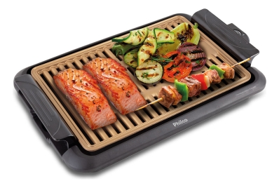 Churrasqueira Elétrica Philco PCQ1200D é ideal para uso interno. Com baixa emissão de fumaça, a gordura dos alimentos é direcionada para uma bandeja coletora, evitando contato com a superfície aquecida e reduzindo a fumaça. Revestimento antiaderente Maxx Gold Durável, facilita a limpeza e permite grelhar os alimentos sem que grudem. O aparelho só funciona quando está corretamente encaixado, garantindo segurança durante o uso. ESPECIFICAÇÕES: Marca: Philco Modelo: PCQ1200D Cor: Preto e Dourado Material: Metal e Plástico Potência: 1200 W Consumo: 1,2 kWh CARACTERÍSTICAS: Material da Grelha: alumínio com revestimento antiaderente dourado Tipos de Alças: laterais com toque a frio (Baquelite) Material da Base: Suporte de Plástico Bandeja de Água: Sim Coletor de Gordura: Sim Grelha Removível: Sim Baixa Emissão de Fumaça: Sim Seletor de Temperatura: Sim Termostato Removível: Sim Pés Antiderrapantes: Sim Sistema de Segurança: Sim DIMENSÕES E PESO: Altura: 9 cm Largura: 46,4 cm Profundidade: 30 cm Peso: 2,22 kg O QUE VEM INCLUSO? 1 Churrasqueira Elétrica Philco 1 Manual de Instruções |