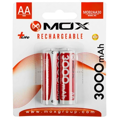 Pilha Recarregavel AA Mox MOB2AA30 de 3.000 Mah 1.2V - 2 Unidades