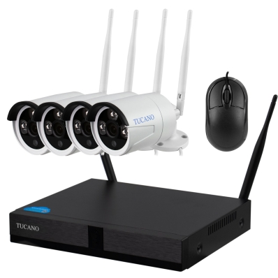 Kit DVR Tucano WF-04 - 4 Canais - 4 Cameras - 1080P - Sem Fio - Preto e Branco