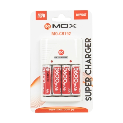 Carregador Mox MO-CB792 - AAA/AA/9V - Bivolt - Branco