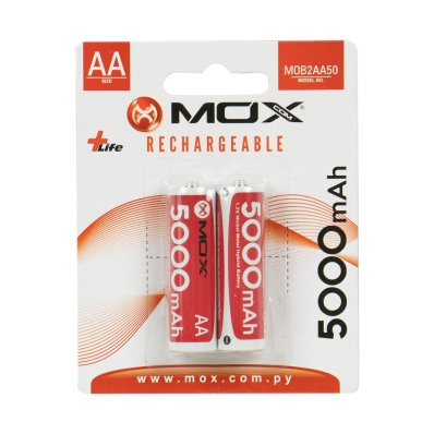 Pilha Mox MOB2AA50 - AA - 5000MAH - 2 Unidades - Recarregavel