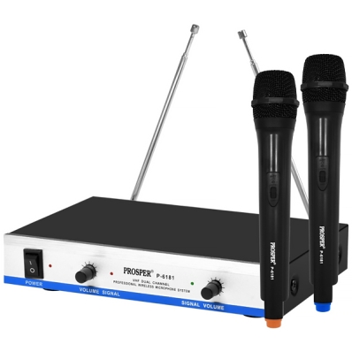 Sistema de Microfone Sem Fio Prosper P-6181 com 2 Microfones 110- 220 V ~ 50/60 HZ - Preto/Prata