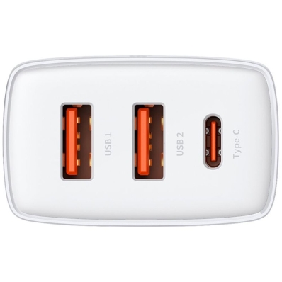 Carregador de Parede Baseus Compact 30 W 2 X USB-A + USB-C - Branco (CCXJ-E02)