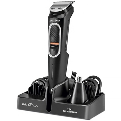 Maquina de Cortar Cabelo Sem Fio Britania BAP21P Multigroom - Preto/Prata |