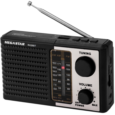Radio Portatil Megastar RX28BT com SD/USB/Bluetooth - Preto/Prata |