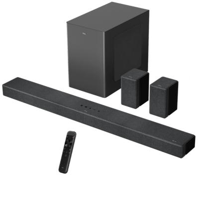 | Características | Sistema de áudio 7.1.4CH - Habilitado para compartilhar conteúdo por meio de Chromecast e AirPlay - Integra Spotify Connect e Tidal, e suporta comandos de voz através das assistentes virtuais Alexa e Google Assistant - O soundbar pode ser fixado na parede - Controles de reproduções e volume integrados na estrutura - Compatível com aplicação TCL Home App Control |