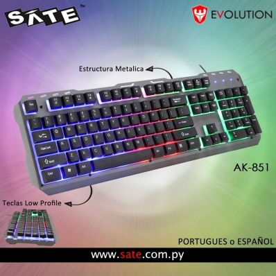Descrição e Informações do Produto Teclado Sate AK-851 Portugeus Metal RGB |