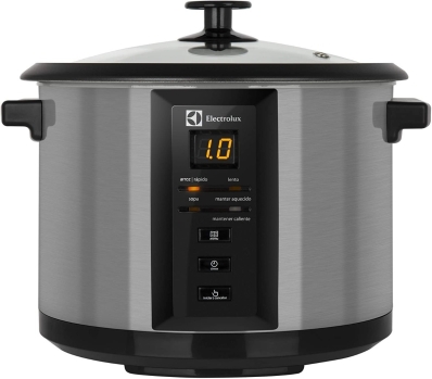 * Possui painel LED programável Pro-Select * recipiente interno removível e antiaderente * Função Rápido: para receitas com temperaturas mais altas, como arroz, refogados, legumes e sobremesas. * Função Lento: cozinha em modo brando, perfeita para molhos e ensopados * Função Sopa: Programada para preparar cremes, caldos e canjas. * Função Manter Aquecido: que mantém o prato quente após o preparo; * Desligamento Automático: ela se desliga quando o preparo está pronto e entra no modo Manter Aquecido. * tampa de vidro temperado * exterior em aço inoxidável escovado * suporte para cozimento a vapor * cabo elétrico removível. * Acessórios incluídos: Colher plástica, Espátula plástica, Copo medidor Especificações: Capacidade em litros: 1,4L a 1,8L Capacidade de xícaras: 8 a 10 Xícaras Tampa: Aberta Cabo de energia removível: Sim Potência: 630 W Timer: Sim Cor: Preto e Inox Ficha técnica: Modelo: ECC20 Voltagem: 220V (não é bivolt) Frequência: 60 Hz Material: Inox Altura do produto: 24,3 cm Largura do produto: 33,2 cm Profundidade do produto: 24,8 cm Peso do produto: 2,8 kg EAN: 7896347146593 |