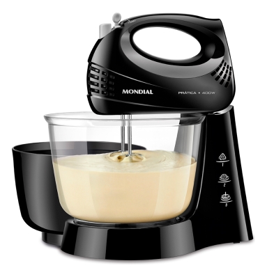 "Prepare receitas em dobro com a Batedeira Prática B-45-B Mondial. Com 400W de potência, 3 velocidades para controlar o ponto das receitas e função turbo para aumentar o desempenho, ela é ideal para praticar a criatividade na cozinha. Vem com 2 tigelas: uma maior de 3,6 litros e uma menor de 2,3 litros. Conta com batedores em aço cromado, que são mais resistentes e deixam a massa no ponto certo. Saiba mais sobre a B-45-B da Mondial: POTÊNCIA DE 400W Proporciona a força necessária para bater de claras em neve até massas de bolo. Garantia de uma consistência perfeita! 3 VELOCIDADES + TURBO Ajuste a velocidade de acordo com o tipo de prato a ser preparado e use a função turbo para aumentar o desempenho da batedeira. DUAS TIGELAS As tigelas possuem capacidade de 3,6 e 2,3 litros. Você pode preparar duas receitas diferentes ao mesmo tempo e em grandes porções para a família. EXCLUSIVA TIGELA TRANSPARENTE A tigela de 3,6 litros é transparente e facilita a visualização dos ingredientes durante o preparo. BATEDORES EM AÇO CROMADO Misturam todos os ingredientes em um movimento contínuo das bordas até o centro, deixando a massa mais homogênea. O aço garante maior resistência e durabilidade. BOTÃO EJETOR Basta pressioná-lo para soltar os batedores. Higienização mais prática e fácil. SISTEMA EXCLUSIVO DE FIXAÇÃO Sistema desenvolvido pela Mondial para facilitar a montagem da batedeira e sua limpeza. |