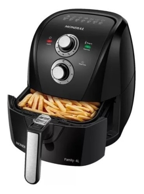 Prepare receitas do café da manhã ao jantar com a Air Fryer AFN-40-BFS Mondial. E o melhor: de forma prática, rápida e saudável! A Tecnologia de Circulação de Ar Quente cozinha, frita (a ar), assa ou tosta os alimentos sem precisar adicionar óleo ou manteiga. Aliada à alta potência, a tecnologia da Fritadeira a Ar também possibilita rapidez nos preparos. O cesto quadrado com capacidade de 4 litros acomoda melhor os alimentos, permitindo assar por igual. Saiba mais sobre a AFN-40-BFS: PRATICIDADE + RAPIDEZ NA COZINHA A Tecnologia de Circulação de Ar Quente e a alta potência possibilitam rapidez no preparo das receitas e praticidade em sua rotina na cozinha. CAPACIDADE DE 4 LITROS + CESTO QUADRADO Considerado o cesto com a maior área plana da categoria*, ele acomoda melhor os alimentos, permitindo assar e fritar por igual. *Comparativo realizado com todos os modelos de Air Fryer tipo original do mercado até Agosto/2022. DESIGN COMPACTO A Air Fryer Mondial tem um design compacto e ocupa espaço reduzido na bancada da cozinha. ANTIADERENTE O cesto possui o antiaderente Duraflon, e os alimentos não grudam no fundo. ALIMENTAÇÃO + SAUDÁVEL Não é preciso utilizar óleo ou manteiga no preparo das receitas. FÁCIL DE LIMPAR A limpeza da parte interna é fácil, pois a cuba e o cesto são removíveis e antiaderentes. CONTROLE DE TEMPERATURA ATÉ 200°C Permite a escolha da temperatura ideal para diferentes tipos de alimentos. TIMER DE 60 MINUTOS Facilidade e comodidade de selecionar o tempo necessário de preparo das receitas. AVISO SONORO + DESLIGAMENTO AUTOMÁTICO Após o tempo predefinido no Timer, há um aviso sonoro e a Fritadeira desliga automaticamente. MUITO ALÉM DE BATATA FRITA A Air Fryer é versátil e permite que você prepare pratos que vão muito além da clássica batata frita. É possível preparar legumes, carnes, peixes, lasanha, pizzas, além de pratos doces, como pudim, bolo de chocolate e cookies. Use sua criatividade para fazer receitas deliciosas! A Mondial é a escolha de milhões de consumidores. Mondial, a escolha inteligente! |
