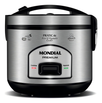 "Prepare deliciosas receitas para sua família com a Panela Elétrica Pratic 6i Premium Mondial. A cuba antiaderente é removível e tem capacidade para 6 xícaras. Acompanha cesto que cozinha alimentos no vapor, preservando todos os nutrientes. Possui função aquecer, que mantém o alimento quentinho mesmo após terminar o preparo. Além disso, o design em inox garante sofisticação para sua cozinha. Saiba mais sobre a PE-43-6X da Mondial: CAPACIDADE DE 6 XÍCARAS A panela de arroz Mondial tem a capacidade ideal para o arroz do dia a dia e outras receitas. VERSATILIDADE DE RECEITAS Prepare arroz, risotos, legumes, molhos, arroz doce e muito mais! DESIGN SOFISTICADO Em aço inox, o acabamento garante beleza para sua cozinha e mais durabilidade. VÁLVULA DE SAÍDA DE VAPOR A Válvula de Saída de Vapor libera o excesso de vapor na panela, mantendo o calor interno necessário para um cozimento perfeito. FUNÇÃO AQUECER O sistema de aquecimento automático conserva o arroz fresco e quentinho por até 8 horas. ACESSÓRIO COZI VAPOR Acompanha cesto que permite cozinhar deliciosos legumes e verduras a vapor, sem perder seus nutrientes. CUBA ANTIADERENTE E REMOVÍVEL O revestimento antiaderente evita que os alimentos grudem e facilita a limpeza. LÂMPADA PILOTO Indica o funcionamento do aparelho. MAIS PRATICIDADE A tampa basculante com travamento e alça, permite a utilização prática e segura, além de facilitar o transporte. COLETOR DE VAPOR Recolhe a água condensada durante o funcionamento do produto. ACESSÓRIOS Acompanha colher e copo medidor. |