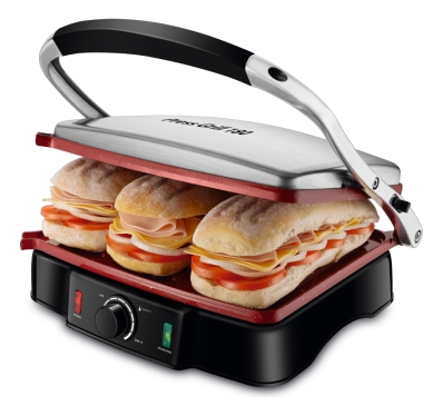 "Com o Press Grill 180 Red Ceramic PG-02 Mondial, você ganha mais praticidade no preparo de grelhados e sanduíches. Possui abertura em ângulo de 180° que permite prensar os alimentos, ou grelhar o dobro da receita de uma vez só. Além disso, é 2 em 1: funciona como grill e sanduicheira. Conta com revestimento superantiaderente, grelhas duplas onduladas e grelhas ajustáveis que facilitam os preparos. Saiba mais sobre o PG-02 da Mondial: REVESTIMENTO ANTIADERENTE O Press Grill possui grelhas onduladas com revestimento Red Ceramic e é superantiaderente. A linha possui tecnologia desenvolvida a partir da cerâmica: aquece rapidamente, os alimentos deslizam facilmente e não grudam. ABERTURA 180° Você pode utilizar o grill de duas formas: um dos lados da grelha para prensar ou deixar as duas grelhas abertas, em ângulo de 180°, o que possibilita grelhar mais alimentos de uma só vez. GRILL 2 EM 1 Versátil, o Press Grill 180 funciona tanto como grill, quanto como sanduicheira. Você pode preparar carnes, peixes, vegetais, pães, hambúrguer, entre outros. ALIMENTAÇÃO MAIS SAUDÁVEL Com o revestimento antiaderente, você prepara suas receitas sem adicionar uma gota de óleo. São pratos mais saudáveis e que mantêm o sabor e as propriedades dos alimentos. CHAPAS DUPLAS ONDULADAS SUPER ANTIADERENTES Grelham por igual os dois lados do alimento. E o melhor: sem grudar! GRELHAS AJUSTÁVEIS Mais facilidade no preparo de alimentos com espessuras variadas. POTÊNCIA DE 2.000W Garantia de mais rapidez no preparo de suas receitas. ACABAMENTO EM AÇO INOX Garante beleza e mais durabilidade. ALÇA FRONTAL COM TOQUE FRIO A alça não aquece e permite o manuseio do aparelho com segurança. LÂMPADA PILOTO Indica o funcionamento do produto. SELETOR DE TEMPERATURA São 7 ajustes de temperatura e você pode escolher a ideal para cada tipo de preparo. BASE ANTIDERRAPANTE Garante mais estabilidade e segurança. VERSATILIDADE DE RECEITAS Você conhece todas as possibilidades de preparo no Grill? É só colocar a criatividade em ação e cozinhar diversas delícias. A lista inclui carnes, peixes, vegetais, sanduíches, hambúrguer, pães, queijos, entre outros. A Mondial é a escolha de milhões de consumidores. Mondial, a escolha inteligente!" |