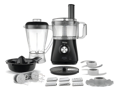 | Acessórios incluídos | 1 batedor, 1 copo liquidificador, 1 disco corte ondulado, 1 disco fatiador, 1 disco fatiador a tiras, 1 disco granulador, 1 disco ralador, 1 disco ralador fino, 1 emulsificador, 1 espremedor, 1 lâmina |