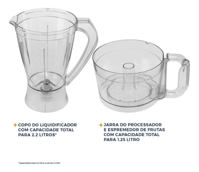 | Capacidade do copo processador | 1,25 L |