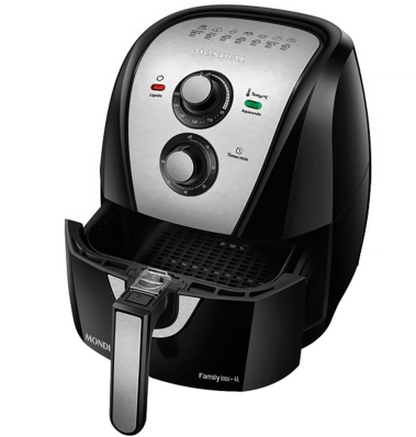 | Características | Não precisa de óleo - Emite alerta sonoro quando finaliza o tempo determinado de funcionamento - Desliga automaticamente - Base antiderrapante - Recipiente e cesta removíveis para fácil limpeza - Com indicadores de tempo e de temperatura |