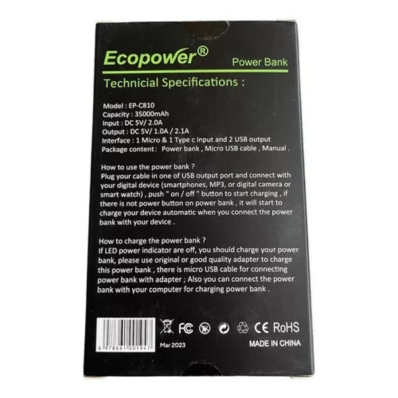 Carregador Portátil Ecopower EP-C810 35.000MAH