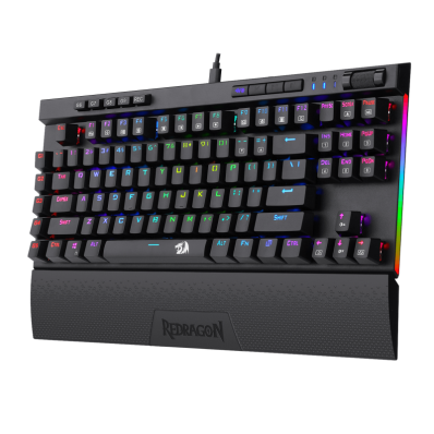 O Teclado Redragon K587RGB-Pro Magic-Wand USB é um teclado mecânico compacto para jogos RGB TKL de 87 teclas com um design sem chave ultra mínimo sem teclado numérico oferece um maior espaço de movimento do mouse e dá a você a oportunidade de bater mais jogadores de FPS fortes adoram. Equipado com interruptores mecânicas à prova de poeira Cherry MX RED Chaves lineares Som de clique silencioso, ação rápida com resistência mínima, sem sensação de toque tátil. A retro iluminação RGB nunca se desvanece: 16,8 milhões de cores retro iluminadas dinâmicas com 16 modos únicos à escolha do próprio utilizador. Além disso, ergonomicamente projetado com uma seção de descanso de pulso removível conectada por ímãs, o descanso de pulso oferece ótimo suporte para um uso mais confortável. |