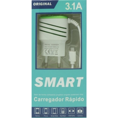 Carregador de Parede Universal Smart Micro-USB 1200MM - Verde/Branco