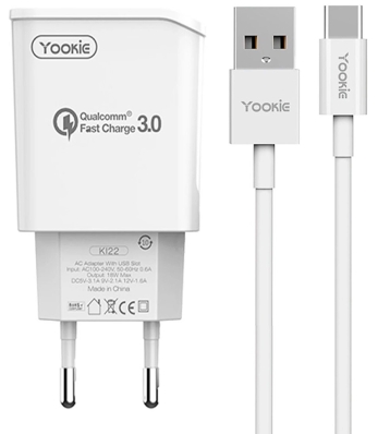 Carregador de Parede Yookie KI22 18W USB-C Bivolt 50-60HZ - Branco