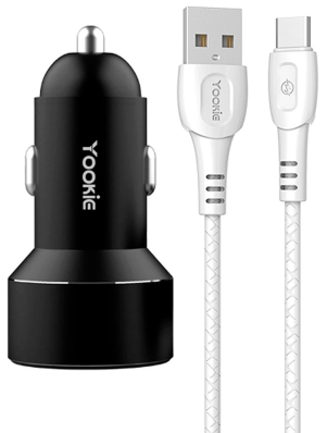 Carregador Veicular Yookie PC3 Dual 12W USB-C - Preto