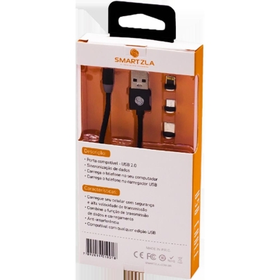 Cabo Magnetico Smartzla USB 2.0 para Lightning USB-C Micro-USB SAT-C005 (1 Metro) - Preto