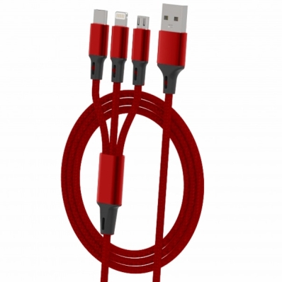 Cabo USB Charge 3IN1 Mega Star CH012R Nylon Vermel