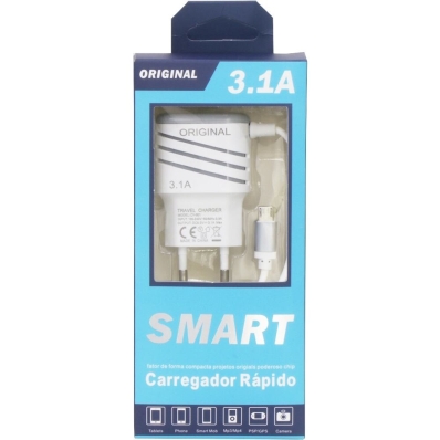 Carregador de Parede Universal Smart Micro-USB 1200MM - Cinza/Branco