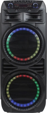 | Características | Controles Bass, Treble, Echo, para efeitos do microfone, volume e reproduções integrados na estrutura - Conta com Tecnologia TWS (True Wireless Stereo), através da qual é possível conectar outra caixa de som com TWS para aumentar a potência sonora - Possui alça de mão e rodinhas na parte superior para facilitar o transporte |