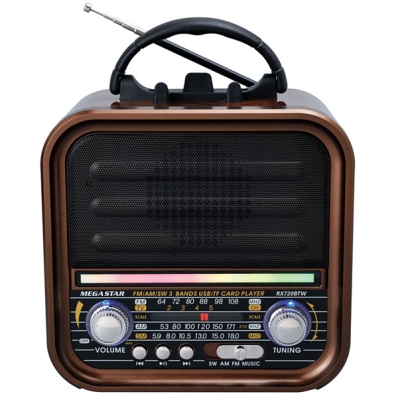 Radio Portatil Megastar RX720BTW 600 Watts P.M.P.O com Micro SD/USB/Bluetooth - Marrom |